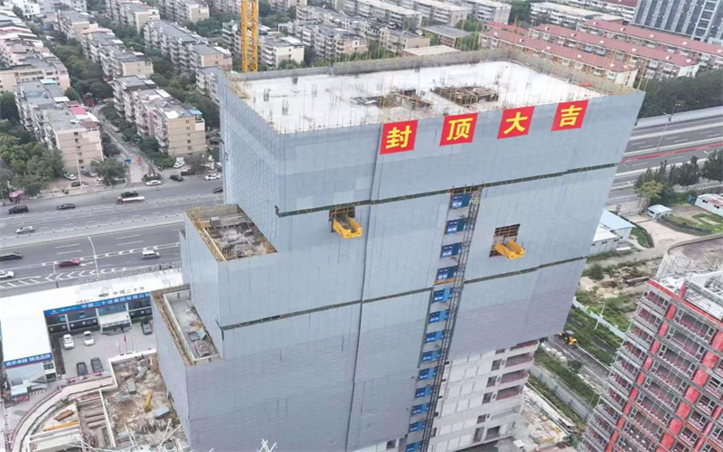 项目位于天津市河西区腹地尖山街道,解放南路与郁江道交口东南侧,与黑牛城道经济带、新八大里商圈共同构成城市金融商务圈与新城市中心。此次封顶的商办楼,采用框架-剪力墙结构,地下2层、地上16层,地上建筑面积为19225平方米,至女儿墙顶建筑高度为79.98m。建成后,这座现代化商办建筑将进一步完善区域商务配套,助力提升城市核心板块的产业承载能力与综合竞争力。