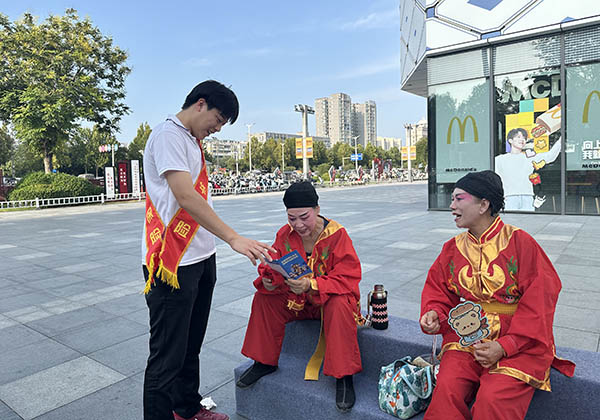 在焦作万达广场开展的解放区文化指导员进基层戏曲展演,以非遗项目吸引年轻客群+戏曲辐射中老年群体。活动现场,中华财险工作人员通过发放宣传页、接受咨询等方式,围绕防范洗钱犯罪、电信网络诈骗和银行卡安全等群众关心的话题,面对面讲解金融风险识别方法与维权途径,现场解答群众疑问。