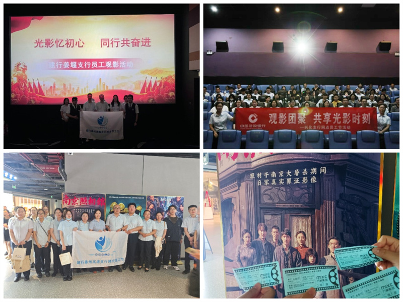 靖江支行、泰兴支行、姜堰支行、兴化支行、高港支行、海陵支行、新区支行:组织“光影忆初心,同行共奋进”主题观影活动,员工们共同观看抗日题材电影《南京照相馆》。银幕上,特殊年代里普通人用坚守与善良守护希望,用无畏与担当诠释家国情怀,一个个动人的情节、一句句深情的对白,让在场员工深受触动。