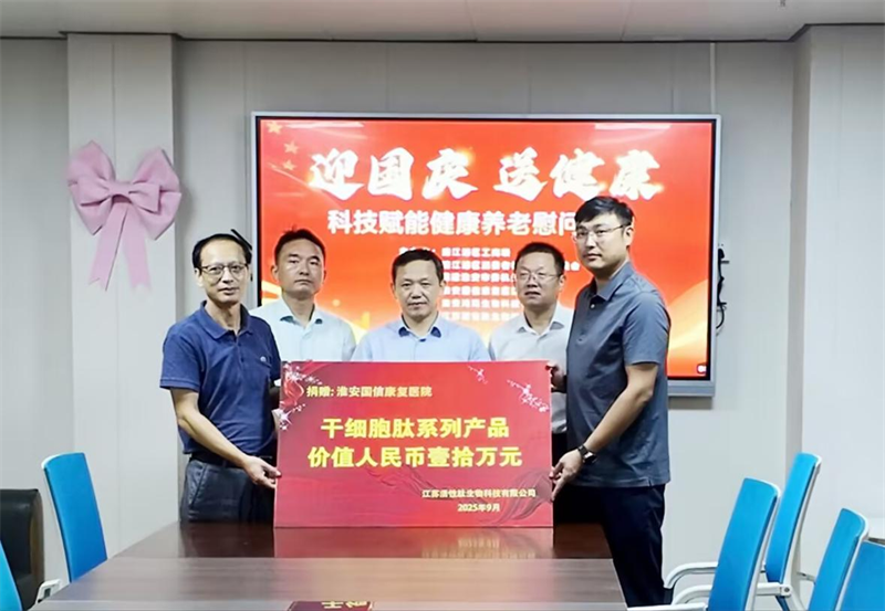 活动现场,民建机关四支会员单位江苏活性肽生物科技有限公司率先践行社会责任,向淮安国信康复医院捐赠了价值人民币壹拾万元的干细胞肽系列产品,以实际行动为老年群体的健康贡献力量。干细胞肽作为生物科技领域的创新成果,在健康养护等方面有着积极作用,此次捐赠也体现了科技赋能健康养老的理念,希望借助科技的力量,为老年朋友的健康保驾护航。
