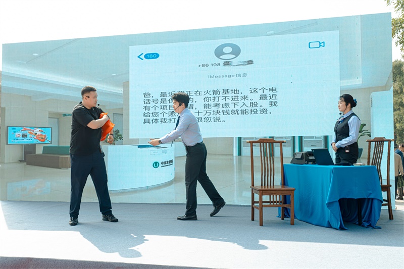 这是农行员工自编自导的情景剧片段,生动还原了“虚假贷款+钓鱼链接”的完整诈骗链条。8分钟的演出里,观众跟着剧情层层拆解“假贷款”背后的陷阱,现场掌声与惊叹声不断。“这比发传单管用多了!以后再碰到微信群里的‘高额贷款’推销,我就知道怎么防了。”家住老城周边的刘女士一边用手机记录剧情,一边笑着感慨。