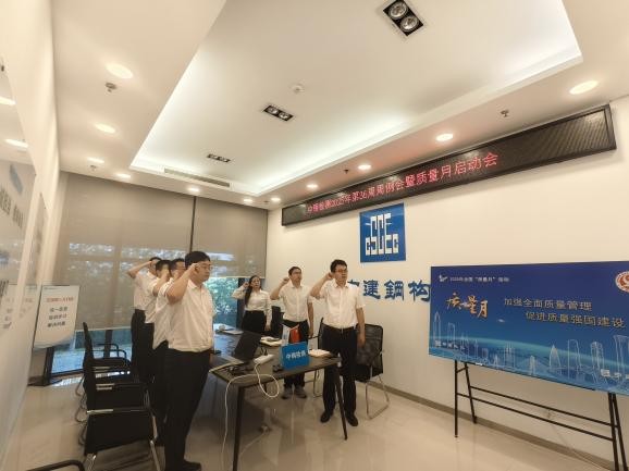 氛围营造同步发力:综合管理部统筹各中心、项目部,在办公区、施工区张贴质量标语、挂画,利用公司官网、微信公众号、抖音等平台发布宣传内容超3条;牵头开展质量征文与风采展示,收集各二级单位征文,以“图片+文字”记录质量行动,生动诠释“钢构出品,必属精品”的理念。