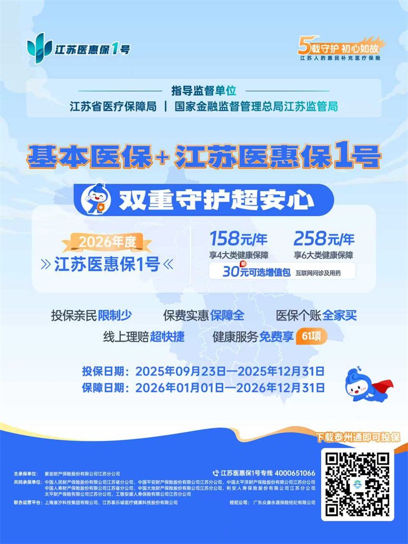2026年度“江苏医惠保1号”正式登陆“泰州通”APP