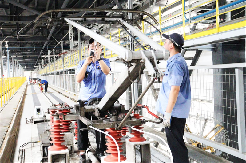 随车机械师检查受电弓外观状态