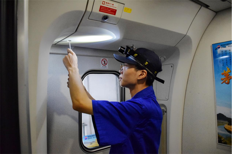 动车组机械师检查车门状态