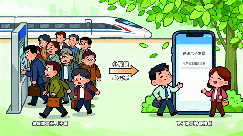 从排长队购票到“指尖一点”,再从纸质发票到电子发票,铁路出行、报销方式的变迁,一张小小报销凭证的形态之变,记录了时代进步的轨迹,更折射出民生关怀的细微之光。这场看似简单的票据变革,实则是一场关乎亿万民众出行体验的深刻变革背后是中国铁路以科技创新推动绿色发展的宏大叙事,也是数字时代公共服务温度的具体体现。
