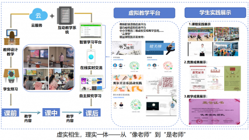 学院创新“真实场景+虚拟平台”双轮驱动模式。全真实践场域:与160余所中小学、幼儿园共建实践基地,开展“我和校长面对面”系列活动,通过思政育人实践强化职业认同。虚拟仿真学习平台:打破时空限制建成虚拟学习平台,为学生提供个性化成长档案,专业自信力提升显著。三级能力进阶:“教育见习”实现真实场域学习,“研习”分析教学策略,“实习”达成独立执教,在递进式实践中完成从技能训练到复杂场景应用的跨越。