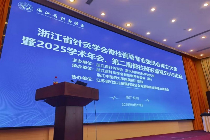 发布时间:2025-09-25 11:05:24 | 来源:中国网 | 作者: | 责任编辑:吴一凡2025年9月18日至20日,由浙江省针灸学会与意大利脊柱科学研究所联合主办,浙江省针灸学会脊柱侧弯专业委员会(筹)、浙江中医药大学附属第三医院、浙江省中医院共同承办的“浙江省针灸学会脊柱侧弯专业委员会成立大会暨2025学术年会、第二届脊柱畸形康复SEAS论坛”在杭州隆重召开。本次大会以“传承精华、跨界融合”为主题,特邀国际脊柱侧弯保守治疗领域泰斗Michele Romano教授(意大利脊柱科学研究所首席物理治疗师)领衔,集结来自华西医院、国家儿童医学中心、南京鼓楼医院等20余位国内外顶尖专家,这场汇聚全球脊柱健康领域顶尖智慧的学术盛会,不仅标志着我国脊柱侧弯保守治疗领域迎来专业化、规范化发展新起点,更将通过国际前沿技术与国产AI创新的深度融合,为基层及边远地区脊柱健康服务注入新动能,推动脊柱侧弯保守治疗的标准化、科学化与个性化发展,打造脊柱健康学术高地。