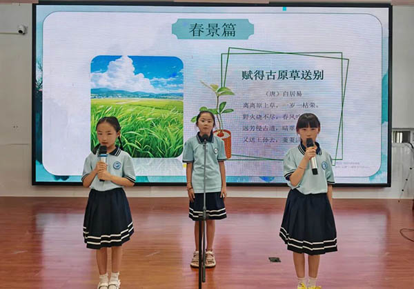 活动现场,小选手们身着整齐的服装,精神饱满地走上舞台。有的朗诵《书香中国》,字字铿锵、气势昂扬,展现新时代青少年昂扬向上的精神风貌与书香气质;有的演绎古典诗词,语调婉转、意境悠远,生动传递出中华诗词的韵律之美与意境之远,将听众带入诗词描绘的美好世界;还有的以小组形式合作朗诵,配合默契,富有感染力的表达不仅展现了扎实的语言功底,更赢得台下观众阵阵掌声,现场书香氛围愈发浓厚。