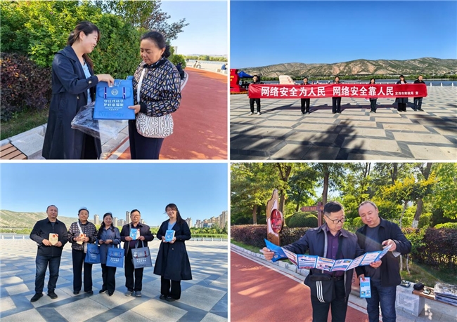 在人工湖,定西市财政局退休党支部在广场等地方悬挂网络安全条幅,开展网络安全集中宣传活动,发放网络安全宣传材料。向群众普及网络诈骗防范、个人信息保护等知识,提升公众网络安全意识与防范能力。
