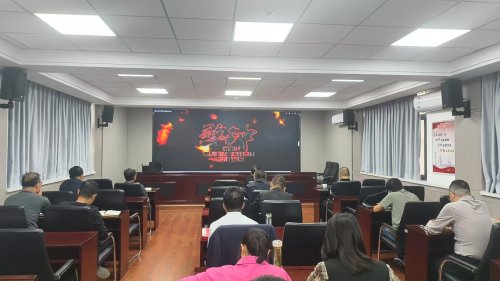 图为:金昌市烟草专卖局干部职工集中观看安全警示教育片《警钟》