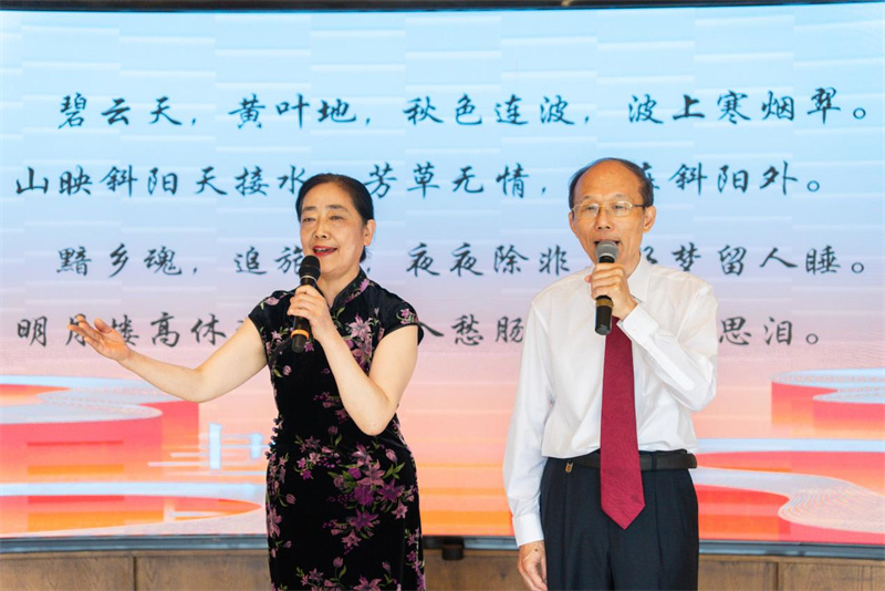 令人难忘的是《忆秦娥·娄山关》的跨界演绎。夏秀兰的吟诵与盐坊京剧社的演唱相得益彰,将革命诗词的豪迈与戏曲的韵致巧妙融合,成为整场活动的一大亮点。蔡红霞不仅朗诵《岳阳楼记》,更以一曲昆曲《苏幕遮》展现传统艺术的柔美与深邃。