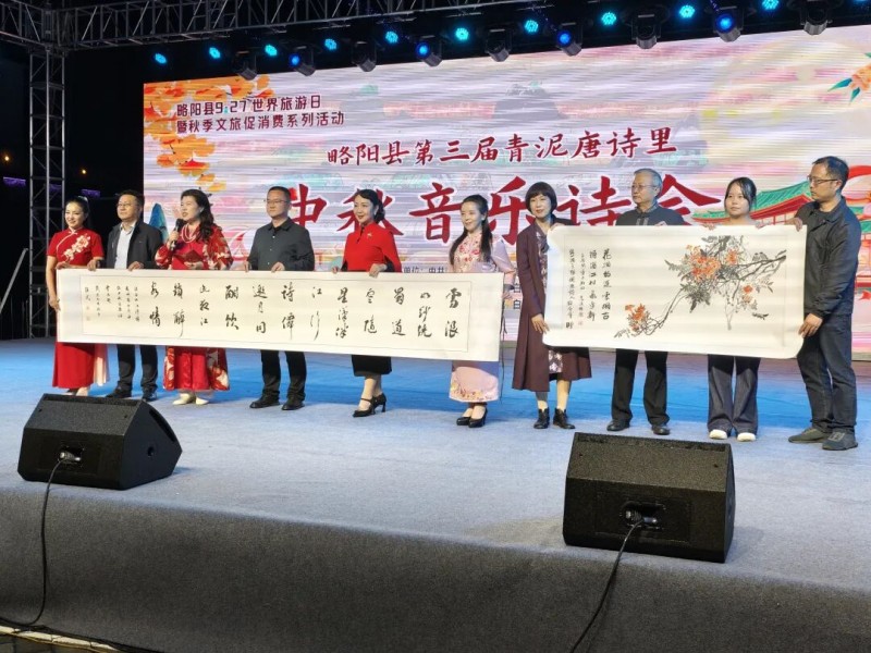 发布时间:2025-09-30 14:31:45 | 来源:中国网 | 作者: | 责任编辑:吴一凡烟雨江镇,诗意流淌。9月27日,由略阳县委宣传部、略阳县文化和旅游局、白水江镇人民政府联合主办的第三届青泥唐诗里中秋音乐诗会暨“农民丰收”活动在我镇临江广场、甘溪沟自驾游营地、古长举吴王城等地成功举办。一场融合了传统文化、诗词吟诵、音乐舞蹈与丰收喜悦的文旅盛宴,在朦胧的夜色中为全镇人民及远道而来的游客留下了难忘的金秋记忆。