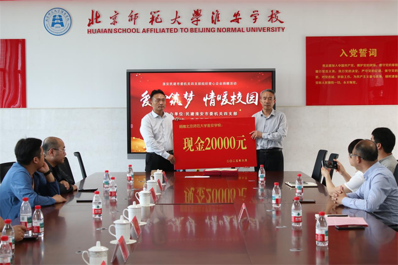 随后,一行人来到北京师范大学淮安学校。此次,爱心企业慷慨解囊,捐赠 20000元现金,用于学校部分教学设备的升级。宋在馥校长满怀感激地表示,学校的发展离不开社会各界的关爱与支持,北师大淮安学校将始终坚守教育初心,以高品质、高要求为办学标准,打造让社会满意、家长放心的优质学府,为淮安教育事业发展添砖加瓦。