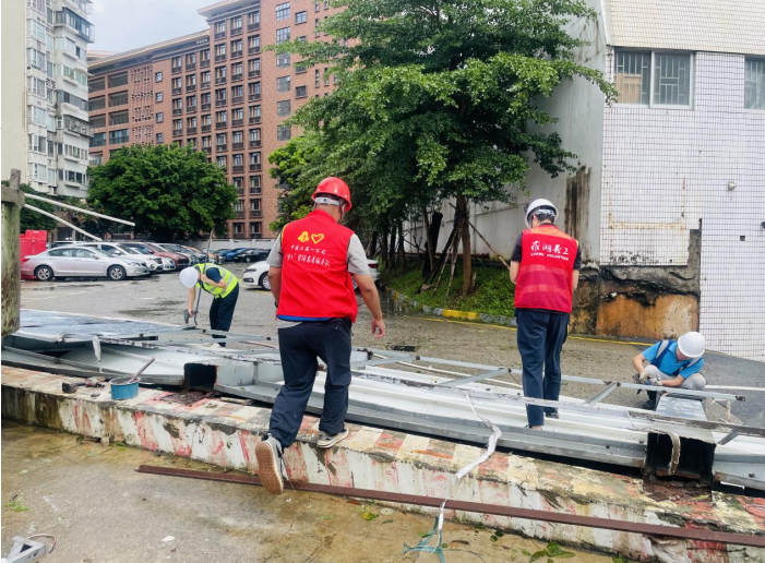 粤海大厦项目位于深圳市罗湖区,是区域内重要的城市建设项目。在此次处置工作中,项目青年志愿者与罗湖区义工联紧密协作,共同应对台风造成的各类现场问题,同时,也充分考虑到了复杂街面环境中潜藏的细节处置需求。“路面障碍、翻倒围栏要及时处置,小区拐角、墙根的散落物资也不能疏漏。”在这样的共识下,队员们携带工具,穿梭在项目沿线及周边区域,对翻倒的围挡逐个进行扶正加固;在那些影响通行的“关键区域”,如散落物资堆积处、路面障碍物分布点等,队员们迅速开展分类清理、高效清运,全方位恢复道路通畅;同时,队员们还向周边居民耐心说明现场处置进展,将安全提示送到群众身边。在处置过程中,项目志愿者团队与罗湖区义工联科学分工协作,凝聚多方合力,现场处置环节无缝衔接,顺利推动了台风后社区环境秩序快速恢复,用实际行动为社区筑牢安全防线。(覃华莹、寇智伟)