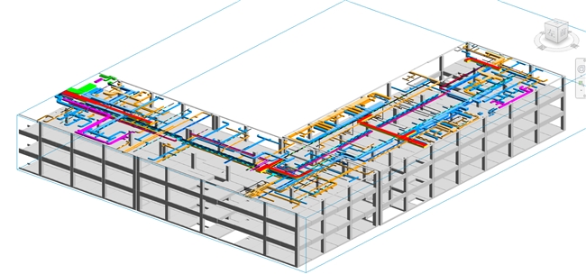 项目建设过程中涉及暖通、给排水、消防、强弱电及专项医疗等多项专业,各类管线数量庞大、规格各异。项目团队创新引入BIM技术构建全专业三维模型,通过对所有专业管线进行数字化整合与模拟排布,精准完成碰撞检测。提前定位化解了数百处潜在管线冲突,不仅降低了项目成本,更将项目施工周期压缩了时长,为项目整体推进赢得了关键时间。