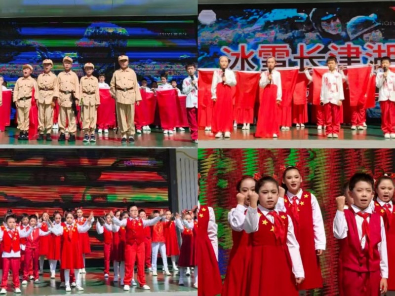 “英雄,是时代的脊梁,他们用无畏的勇气铸就不朽传奇。”第三篇章在庄严的旋律中开启,三年级一班的《英雄赞歌》铿锵有力,字字叩击人心;四年级学子带来的《冰雪长津湖》《战!》,以饱含敬意的诵读重现革命先烈的峥嵘岁月,不少同学眼中泛起泪光。当“我们接过英雄手中的火炬”的誓言响起,现场师生无不被这种薪火相传的精神力量深深打动,真切体会到“红色经典是革命历史与精神的文化载体”的深刻内涵。