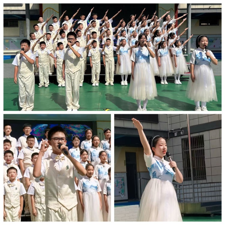 “东方红旋律响彻太空,高铁长龙驰骋神州,‘天眼’凝望深空,‘蛟龙’探秘汪洋!”五年级一班的《盛世中国》以大气磅礴的诵读展现大国风采,六年级学子的《科技梦强国梦》《星辰梦》则将视线投向未来,用充满朝气的声音诠释“科技强国,有你有我”的信念。选手们配合着科技元素的背景画面,将对航天事业的向往、对科技发展的自豪娓娓道来,彰显出新时代少年“立大志、明大德、成大才、担大任”的精神风貌。