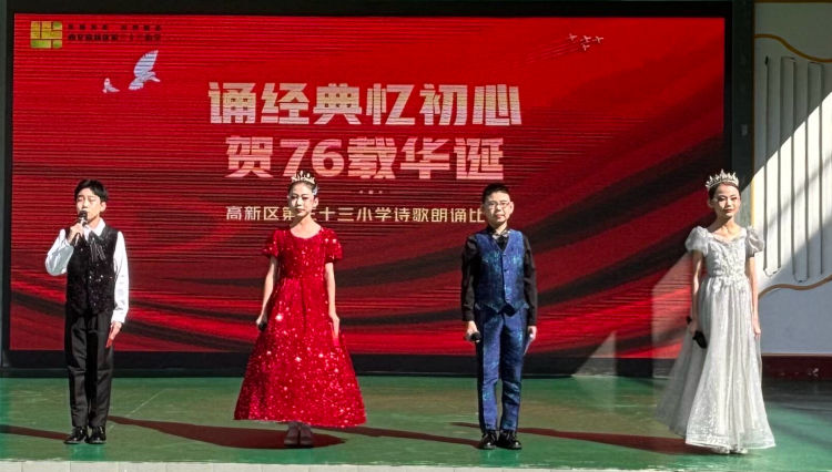 发布时间:2025-10-10 10:11:41 | 来源:中国网 | 作者: | 责任编辑:吴一凡“百年风华正年少,强国有我看今朝。”2025年 9月 30日上午,西安高新区第三十三小学的操场上红旗招展、掌声雷动,以“诵经典忆初心、贺 76载华诞”为主题的国庆诗歌朗诵比赛在此隆重举行。全校师生齐聚一堂,用饱含深情的诵读讴歌中华民族伟大复兴的奋斗历程,追寻革命先烈的光辉足迹,以最真挚的情感为祖国 76华诞献上祝福。