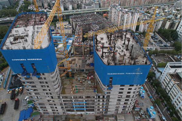 “目前主体结构施工整体已完成70%,其中A座顺利施工至17层,B座推进至15层,国庆节假日期间,项目部400余名建设者坚守岗位,冲刺11月30日完成主体结构封顶的目标。”项目经理陈建勇介绍,为加快建设进度,项目部创新采用穿插作业模式,在推进主体结构施工的同时,同步开展二次结构及机电、消防安装等工作,实现多工序高效衔接,在保质保量保安全的前提下,有效缩短建设周期。按照施工计划,项目将于11月同步启动幕墙施工,为项目整体竣工交付提速。