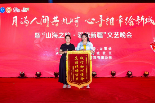 活动中还与大家共同回顾了去年的援疆公益项目,现场观看了新疆伊宁愉群翁中心小学师生的感谢视频,新城社区石榴籽爱心公社负责人黄妹华来到现场,将新疆伊宁县愉群翁回族乡学区办委托赠送的锦旗赠予一直支持这项工作的新城社区及辖区爱心人士、爱心企业,共同见证这份跨越山海的情谊落地生根。同时,黄妹华也与大家介绍了今年的公益项目,通过开展多种形式的关爱帮扶工作,让民族团结事业迸发勃然生机。