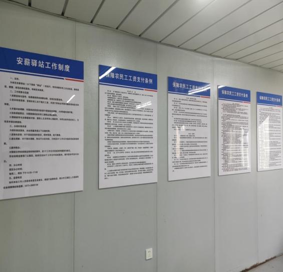 在项目部设立农民工维权公示牌,明确考勤记录、工资核算标准及发放时间,联动卫滨区劳动监察部门建立快速维权通道,杜绝欠薪隐患。