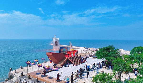 除了自然风光和历史文化,秦山岛景区还为游客们准备了精彩纷呈的文化盛宴。在秦山岛神路广场,《徐福东渡》情景剧精彩上演,碧海、蓝天、神路与舞台融为一体,营造出如梦如幻的场景。剧组人员用心演出,每一个动作、每一句台词都饱含深情,将徐福东渡的传奇故事演绎得淋漓尽致。游客们仿佛置身于那个波澜壮阔的时代,感受到“仙意不在别处,就藏在山海之间”的意境。这场情景剧不仅丰富了游客的游览体验,更让游客们对秦山岛的文化有了更深刻地认识和理解。
