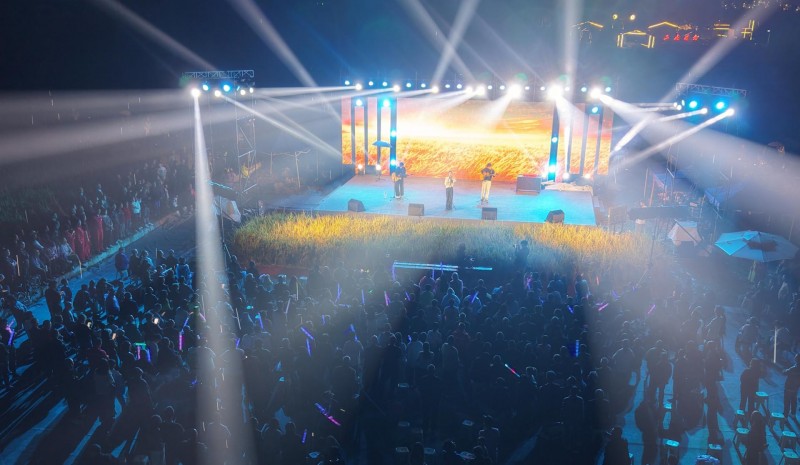 本次派对最核心的亮点,莫过于那个真正“从田野里长出来”的舞台。主办方别出心裁地将舞台与观众席完全设置在金色的稻田之中,让人仿佛置身于一幅流动的丰收画卷。稻穗在秋风中摇曳,与舞台上的音符共振,营造出极具冲击力的沉浸式体验。