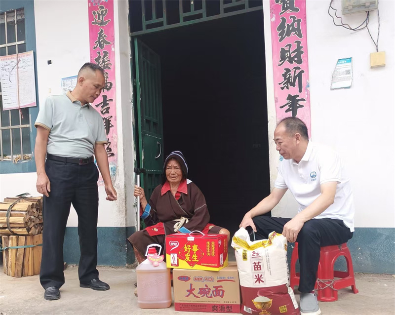 活动当日,党支部志愿者们伴着微凉秋风,满怀热忱前往瑶族自治区连南县东芒村。在村支书的引导下,志愿者逐户走访慰问了3位五保户老人,每到一户都递上精心准备的慰问品——不仅有大米、食用油等日常物资,还特意添置了中秋月饼。项目贾书记坐在老人身边,拉着家常询问身体状况、生活需求,认真倾听老人的心声,用温暖话语给予精神慰藉,让老人们在微凉秋日感受到浓浓的关爱。