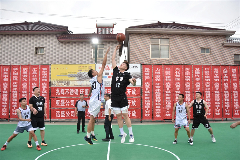 董北村党委书记沐东录介绍,这里原先是一个简易的健身场,由于年代久远部分设施损坏。位于本村的兆辉、亚盛、远盛等公司的老总、在外经商的能人建议,在这里改建一个篮球场,并愿意提供捐助。于是一个570平方米的篮球场建成,安装了LED照明灯、电子计分自动显示、观看座椅等,保洁和维护等相关工作由村里统一安排。“这是我们提振干群精气神,重塑董北新形象的一个举措。”