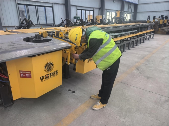 设备自有。以高质量设备体系保障工人高效作业。在设备采购时,优先从技术领先、口碑优良的厂家中,通过竞争性谈判,筛选出价优质高的合作方,确保设备性能和质量。注重设备配套性,在采购设备时,均选用同一厂家系列产品,减少设备故障率,为班组按计划推进生产提供稳定的设备保障。以精细化设备管理强化班组责任意识。实行“定人定机定岗”制度,设备进场时确定专人负责,由项目物机部、工程部、安质部联合操作人员、维修班共同验收调试,并参与设备使用与维修保养交底。将设备状态与班组绩效挂钩,倒逼班组主动关注设备保养,形成“用好设备、管好设备”的主动意识,设备故障率较租赁模式下降约 10%。以智能化设备提升班组生产效能。优选钢筋加工、张拉压浆、锚穴凿毛、防水喷涂等智能化设备,实现智能化减人,较传统预制项目人员减少 21%。采用智能张拉设备和智能压浆一体化台车,确保张拉压浆实现智能控制;使用全自动数控钢筋剪切弯曲生产线和全自动定位网焊机等,减少 4名作业人员,半成品钢筋生产数量提升也大幅提高;利用分列智能化云控手段确保预制产品生产有序推进,安全质量可控,获得业主高度肯定。