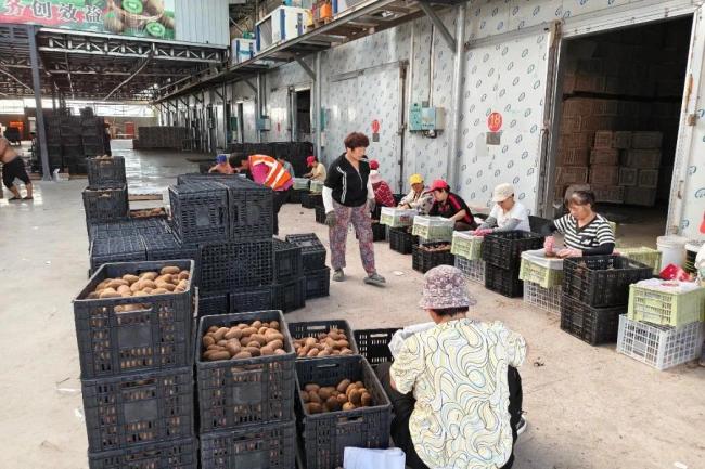 龙飞果业合作社冷库建成后工人们正在分拣猕猴桃
