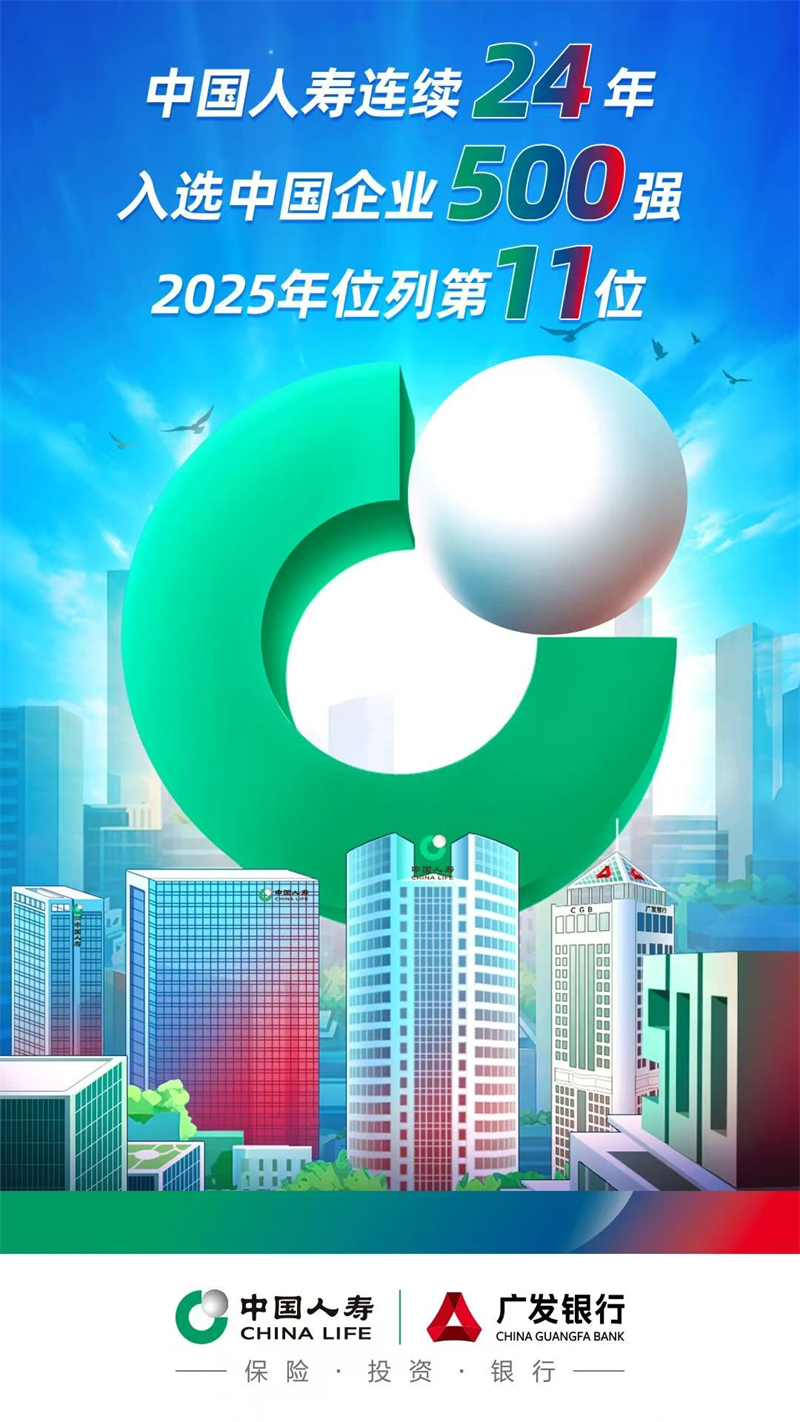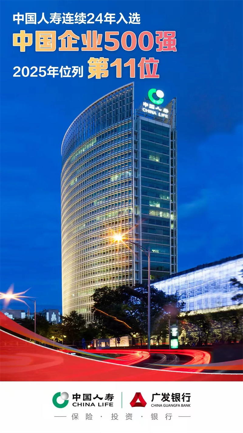 发布时间:2025-10-22 15:16:51 | 来源:中国网 | 作者: | 责任编辑:吴一凡9月15日,中国企业联合会、中国企业家协会发布2025中国企业500强榜单,中国人寿连续24年入选,排名第11位,较去年上升6位,位列行业首位。