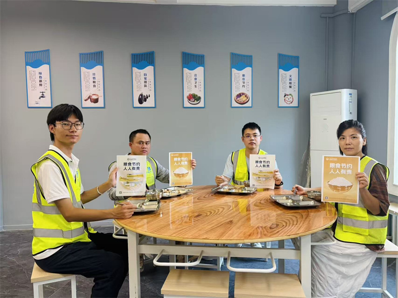 深圳机荷高速改扩建项目积极营造“爱粮节粮”浓厚氛围,利用电子显示屏滚动播放宣传标语,并在员工食堂精心组织了“光盘行动”无剩饭挑战活动,引导员工按需取餐、杜绝浪费,有效营造了“节约光荣、浪费可耻”的用餐氛围。