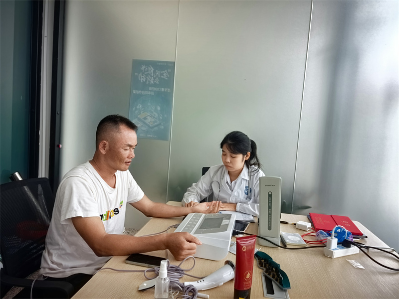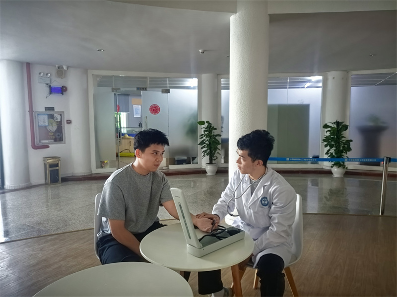 义诊期间,项目职工积极咨询各类健康问题,医护人员耐心开展“一对一”问诊服务,详细询问职工身体状况,并进行初步筛查与诊断。针对颈椎病、腰椎间盘突出、痛风等十余种常见疾病,医护人员普及了相关保健知识,并提供专业调理建议。他们凭借丰富的诊疗经验,深入讲解了常见疾病的症状与危害,以及应对亚健康状态的自我调理方法。在调理过程中,医护人员充分展示了中医把脉和脉冲针灸等特色理疗技术,为职工提供了既有效又舒适的调理体验。