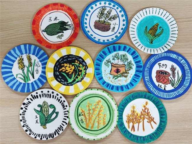 美术教室里,学生们以剩余纸盘为画布,发挥创意绘制“粮”心主题作品。“我把玉米画成金色小船,载着节约粮食的种子驶向2030”,一名学生分享道。孩子们用画笔勾勒丰收景象、传递节粮理念,立志成为会育粮、懂研粮、能惜粮的“粮”心少年,让节粮意识在艺术创作中扎根。
