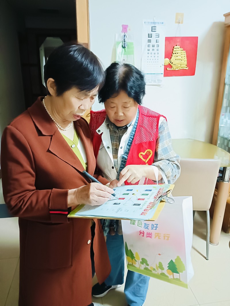 此次活动以社区绿芽先锋志愿者队伍为入户行动主体,志愿者们身着统一标识,精神饱满地走进辖区商户和居民家中。他们携带精心准备的垃圾分类宣传资料,用通俗易懂的语言,向居民们详细讲解了垃圾分类的重要意义、具体分类方法、投放要求以及日常生活中常见垃圾的正确分类方式。针对居民提出的疑问,志愿者们耐心解答,确保大家听得懂、记得住、用得上。