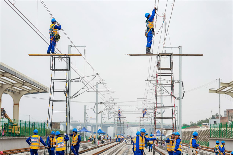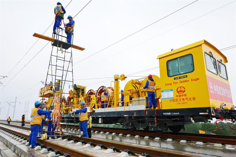“我们按照集团公司‘四位一体’工作要求,通过机制保障+成长赋能+薪酬激励多维发力,实现接触网自建作业队产业工人管理效能和技能水平双提升。襄荆高铁建设中,创造了单日架设26个锚段接触网线路的施工记录,并确保一次成型、一次成优。”中铁武汉电气化局集团有限公司工程管理部副部长李双才表示。