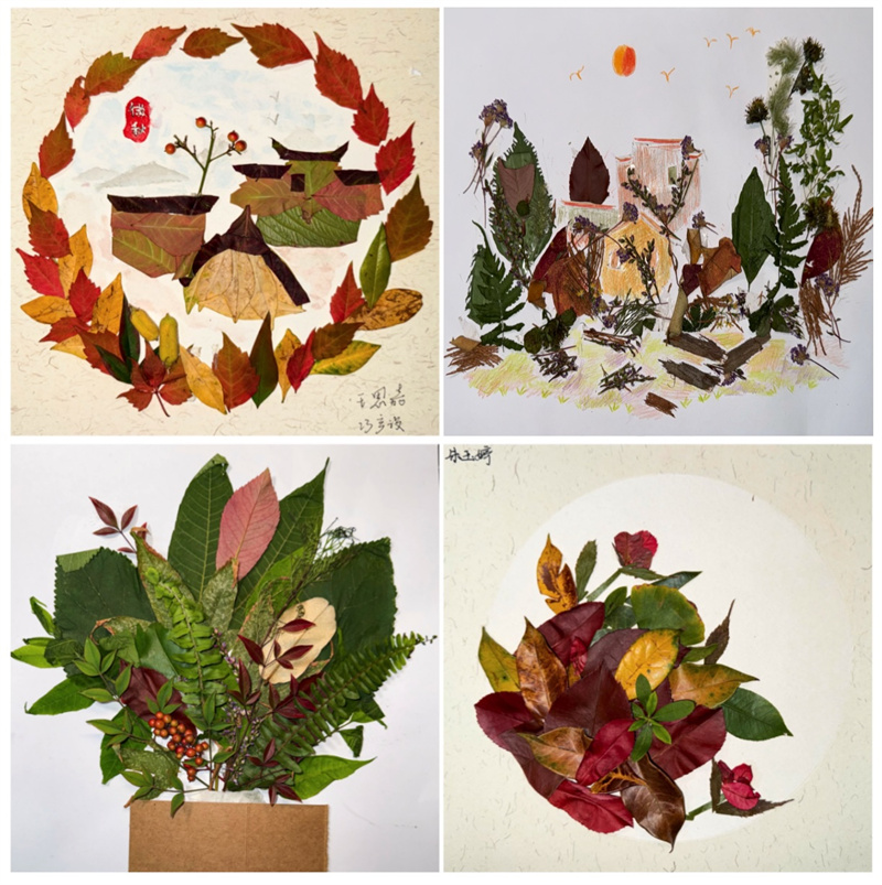 活动以落叶创作为载体,倡导“在自然之美中读懂自己”。同学们采集不同形态与色泽的秋叶,进行构图、拼贴与再绘,完成从自然形象到情绪意象的转化,作品呈现“记录心情、讲述故事、分享意义”的创作路径。通过审美体验驱动情绪调节,借同伴展陈促进积极反馈,学生在专注、协作与表达中提升自我效能感与心理能量,形成热爱生活、积极进取的精神面貌。