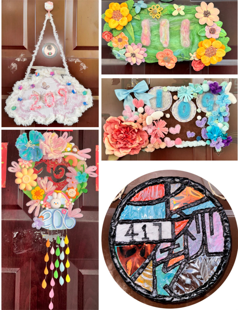 活动以宿舍为单位,面向“空间治理+同伴互助”的双重目标,鼓励成员共同完成门牌的构思、手绘与制作。创作过程中,大家在色彩与符号中约定“室约公约”,以审美共同体重塑生活秩序与情感温度。在明净整洁的环境中,同学们体验到合作的快乐与家的温暖,构建积极的“第二课堂”心育空间。