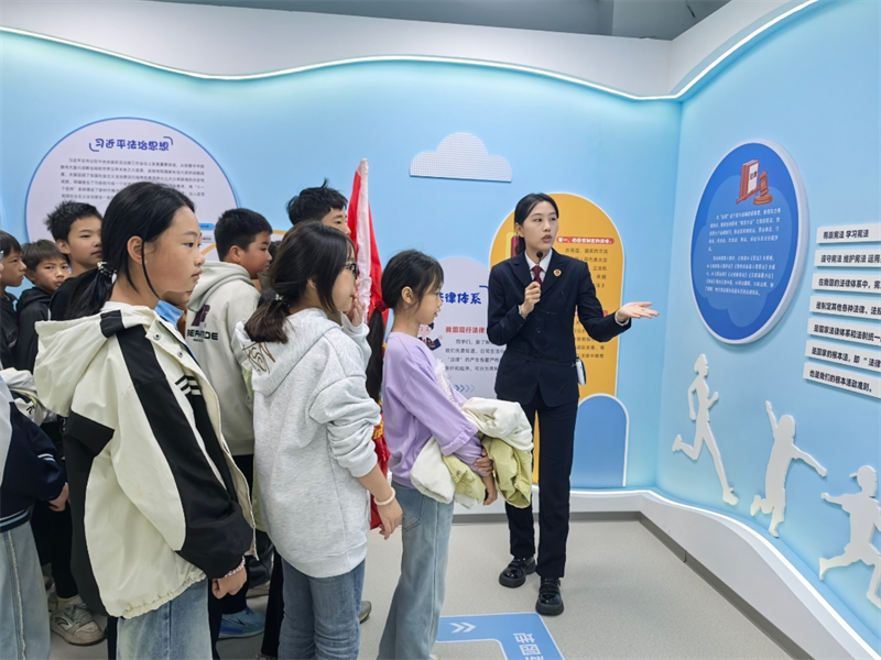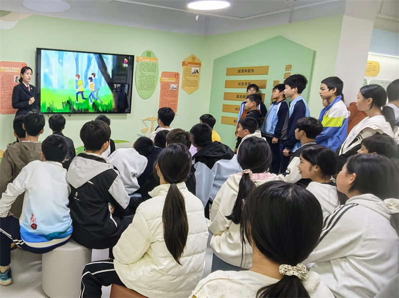 活动伊始,同学们在检察干警的引导下,有序参观了攸县青少年法治教育中心。展厅内丰富的图文展板、生动的案例解析以及现代化的多媒体互动设备,瞬间吸引了所有人的目光。检察干警用通俗易懂的语言,向同学们介绍了检察院的职能、法律的基本概念,并结合与青少年学习生活息息相关的典型案例,深入浅出地讲解了预防校园欺凌、防范网络诈骗、抵制不良诱惑等法律知识。在互动体验区,同学们兴致勃勃地参与了法律知识抢答、法律图画拼图、法治小剧场等项目,这种寓教于乐的方式,让枯燥的法律条文变得鲜活起来,使同学们对司法程序有了更直观、更深刻的理解。