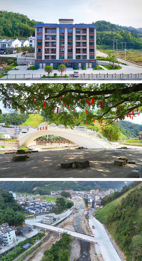 2024年,江湾镇遭遇百年不遇的洪涝灾害,道路房屋受损严重,群众出行和居住安全受到威胁。凤武工作队第一时间响应,组织凤岗社会各界捐赠价值约30万元、8卡车的医疗救援和防汛应急物资外,还争取市镇两级计划外资金700万元,支持车行桥、人行桥以及全倒户安置楼等项目建设,占工程总造价近40%,并为10户全倒户每户提供10000元现金入住大礼包用于购置家私家电。目前安置楼已入住,人行桥已建成投用,车行桥已开工建设,预计本月底投入使用,成为武江灾后重建的“坚强后盾”。