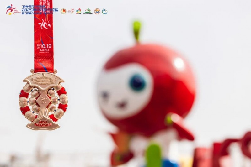 这份甜蜜更被定格为永恒的纪念——完赛奖牌匠心独运地采用苹果造型,完美呼应本地的物产名片。与此同时,苹果元素的设计与阿克苏城市IP“糖心心”的可爱形象遍布赛场,营造出浓厚的“苹果”氛围,陪伴选手度过一段充满风味与记忆的奔跑旅程。