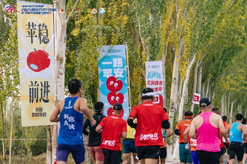 赛道两旁,阿克苏市民自发组成的啦啦队挥舞双手,为每一位跑者呐喊助威,音乐的节奏与奔跑的脚步相互呼应,将整座城市化作一片充满活力与韵律的欢乐海洋。
