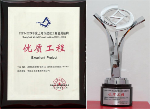 此次获奖是对上海二十冶技术实力与质量管理水平的高度肯定。公司将以此次荣誉为起点,持续强化质量管控核心优势,全力铸造更多彰显公司建造水平的精品工程,为进一步巩固冶金建设国家队优势、推动公司高质量发展提供有力支撑。(上海二十冶:庄丽萍)