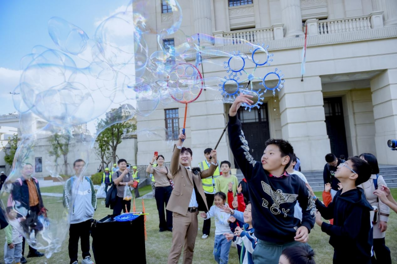 奶龙魔法时光主题区推出华东首部海洋环保主题奶龙IP亲子剧《奶龙魔法奇遇记》,通过沉浸式演艺、趣味互动传递环保知识,孩子可跟随奶龙人偶拯救海洋,实现“观演—互动—教育”三位一体的体验,达成童趣与教育的双重融合;街头《泡泡秀》则以魔术手法打造巨型泡泡,孩子穿梭其中,笑声成为戏剧节的治愈背景音。10月24日-11月2日的“网梗星光大赏”精准契合年轻群体喜好——星光大道区铺设顶流红毯,游客可化身明星拍照打卡;热梗场景打卡点引发共鸣,NPC会与游客互怼爆梗;每晚的玩梗音乐派对,以热门梗歌循环轰炸,游客跟着节奏蹦跳接梗,彻底打破观演者与参与者的界限。