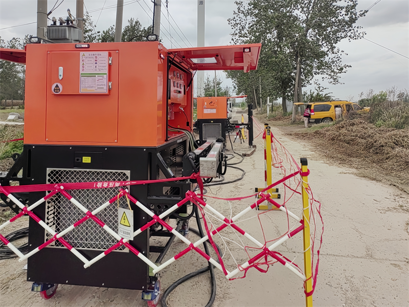本次检修工程内容为淮安淮阴10千伏杨庄M31线杨庄一组支线29#-32#杆电缆维修,涉及一台公变需要保电。当前正值农忙时节,大量粮食急需烘干,台区用电量明显增长,单台发电机无法承担用电负载。该中心技术团队联合厂家精准研判,通过负荷测算确定采用2台50千瓦低压发电机并机运行方案——依托同期装置实现电压、频率、相位精准同步,构建临时并网系统,实现“零感知”检修。