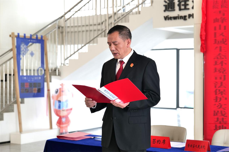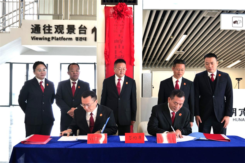 发布时间:2025-10-29 09:29:20 | 来源:中国网 | 作者: | 责任编辑:吴一凡2025年10月21日,湖南省隆回县人民法院与溆浦县人民法院在中国最长高山索道—雪峰山高铁观光索道天问站举行签约揭牌仪式,正式建立雪峰山区域生态环境资源司法保护协作机制。两地法院以"一座雪峰山、齐抓共保护"为原则,通过跨域协作破解生态保护难题,为雪峰山生物多样性保护、红色文化传承及区域绿色发展注入司法新动能。