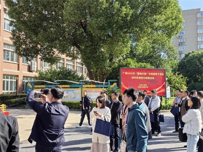 发布时间:2025-10-29 13:30:33 | 来源:中国网 | 作者: | 责任编辑:吴一凡10月23日,秋色浸染校园,教育智慧碰撞。广西壮族自治区2025年“国培计划”中西部骨干项目初中优秀校长研修班的50余位教育管理者,专程走进无锡市南湖中学,围绕班组建设开展深度研修,为两地教育交流搭建起理念互通、经验共享的桥梁。