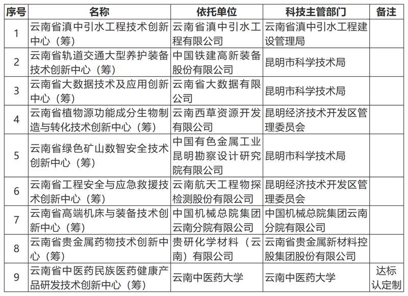 “云南省工程安全与应急救援”等9个省技术创新中心正式批准建设
